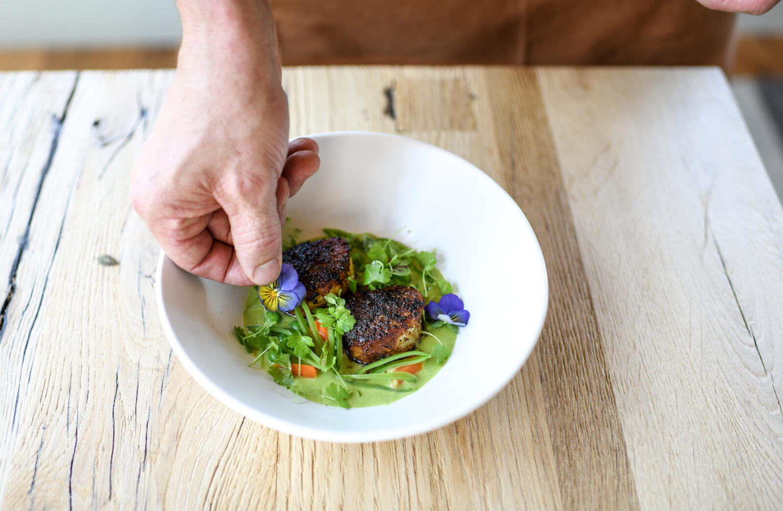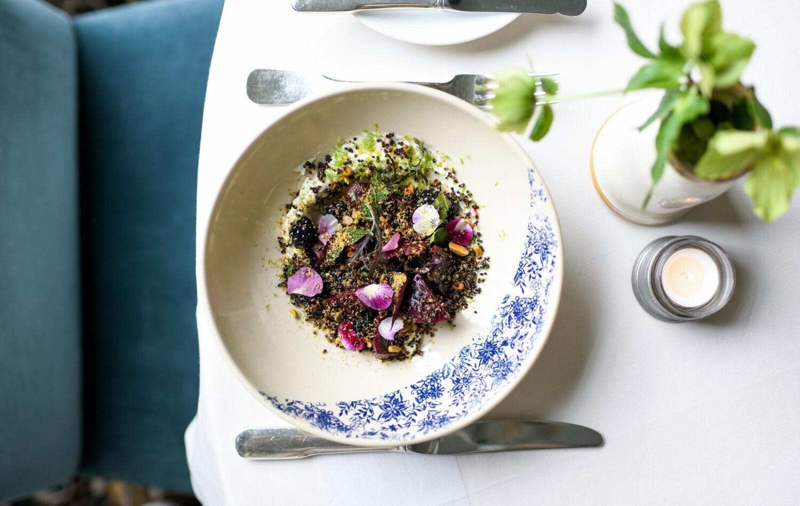 The chef and beverage teams at Blackberry Farm and Blackberry Mountain love to forage wild and planted flowers that grow around the properties to add a pop of color to their dishes and cocktails. From a sprinkle of petals to full blooms, edible florals put a simple but inviting finish on a plate or in a glass and give a subtle nod to the season blooming all around the restaurants. Enjoy flipping through creations from The Barn, the Dogwood, Three Sisters and the Firetower, and find inspiration for your Spring meals in their colorful garnishing!